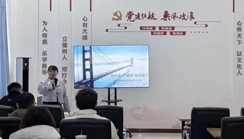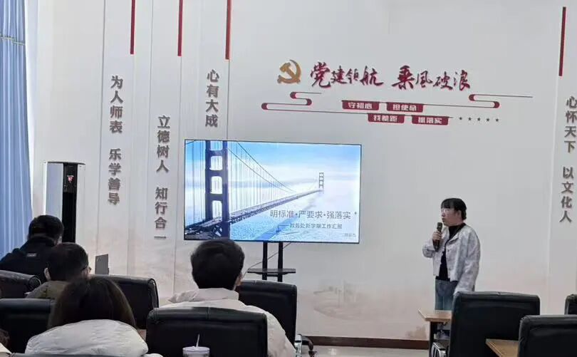 教务处胡运杰主任聚焦“教学常规标准”,结合职业教育教学特点与学校实际,从备课、上课、作业布置与批改、辅导答疑、教学评价等关键环节,进行了全面系统的解读。他强调,教学常规是保障教学质量的核心抓手,是提升课堂实效的基础工程,必须严格执行、落到实处。